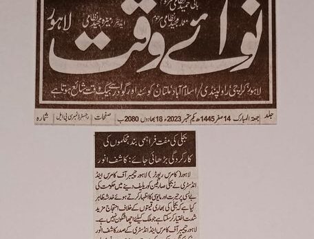 Highlighting issues of the business community at Governor House with Prime Minister Mian Shahbaz Sharif sahib and Governor Punjab Baleegh ur Rehman sahib Admin-Kashif2023-08-28T14:46:20+00:00 August 18, 2023News0 CommentsRead more...