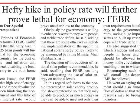 HEFTY HIKE IN POLICY RATE WILL FURTHER PROVE LETHAL FOR ECONOMY: FEBR