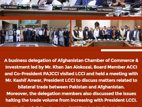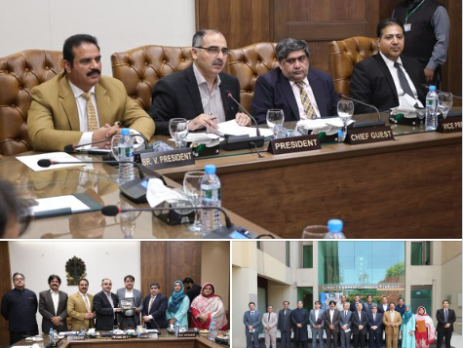 Participants of 35th Senior Management Course of the National Institute of Management, Lahore visited LCCI and held a meeting with Mr. Kashif Anwar, President LCCI. Mr. Zafar Mehmood Ch, Senior Vice President, Mr. Aamir Riaz, Mian Rehman Aziz Chan, Former SVP, Haji Asif Sehar, Raja Hassan Akhtar, EC Member were also present in the meeting.